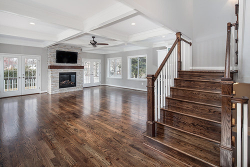 Expert custom staining and refinishing for North Atlanta. Click the 'i' icon to see which finish fits your home.